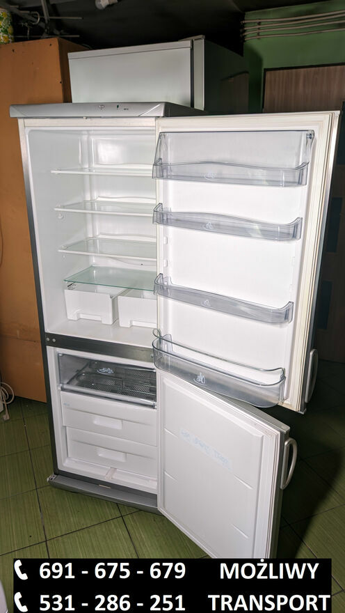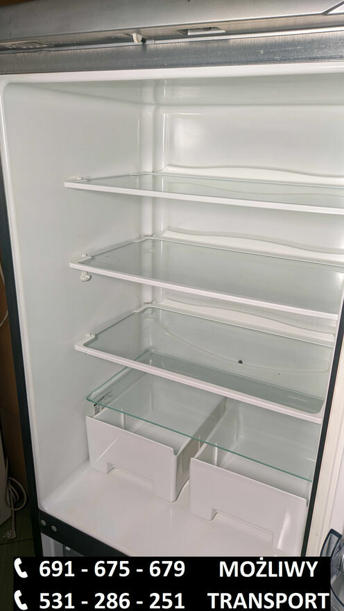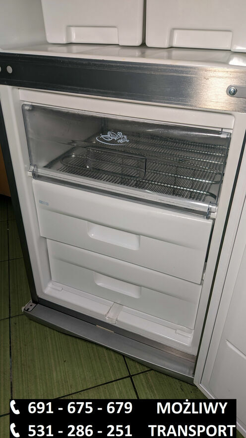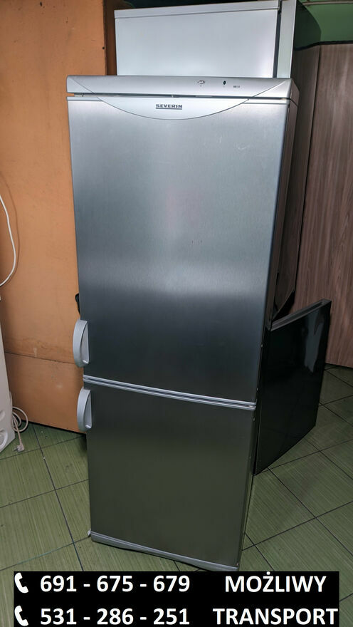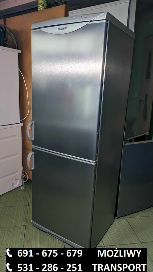 691_675_679 lub 531_286_251Używana lodówko-zamrażarka Severin w kolorze srebrnym.