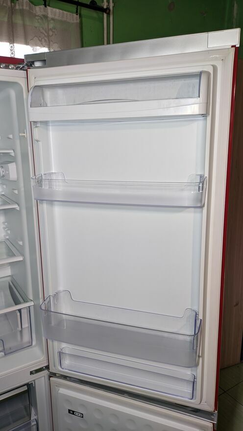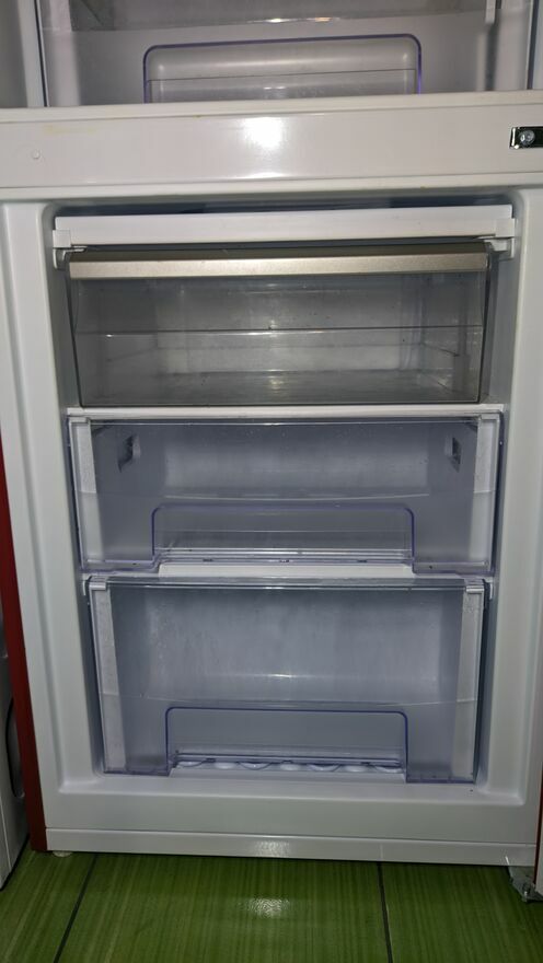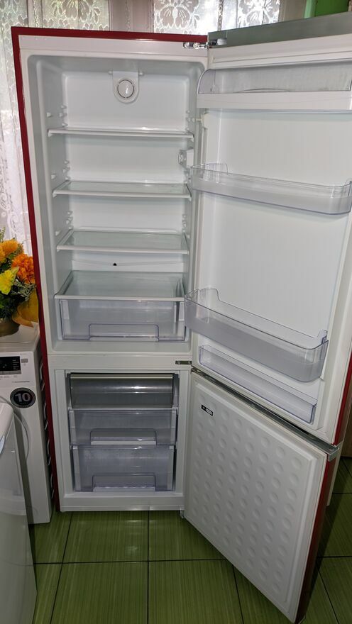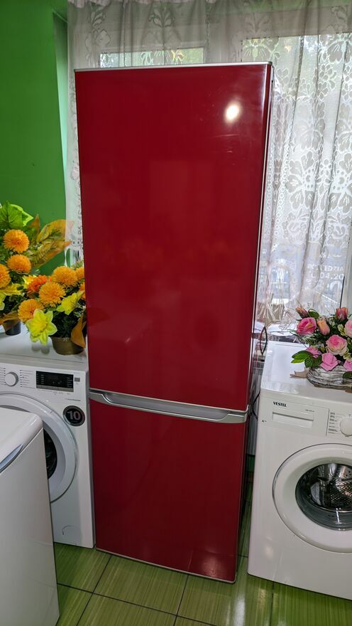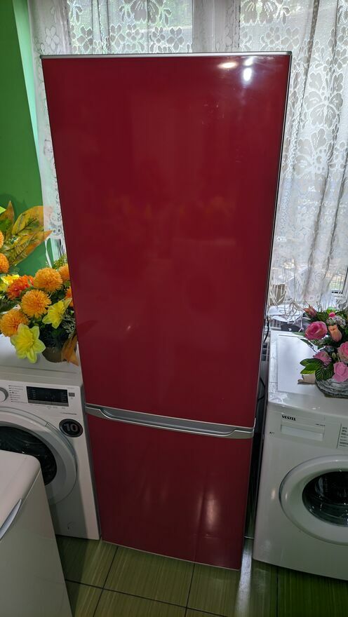 691_675_679 lub 531_286_251Używana lodówko-zamrażarka Hanseatic w kolorze czerwonym.