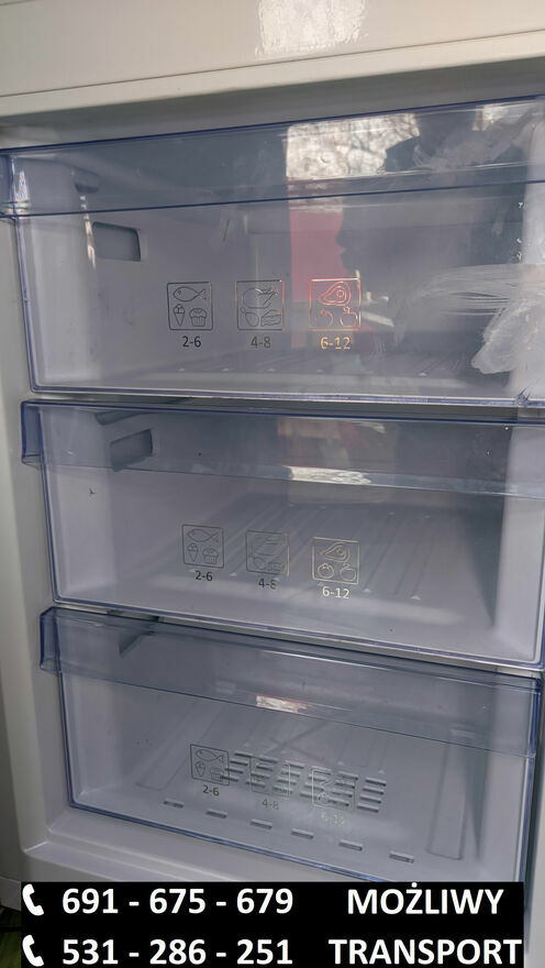 691_675_679 lub 531_286_251Używana lodówko-zamrażarka Beko kolorze srebrnym - inox.