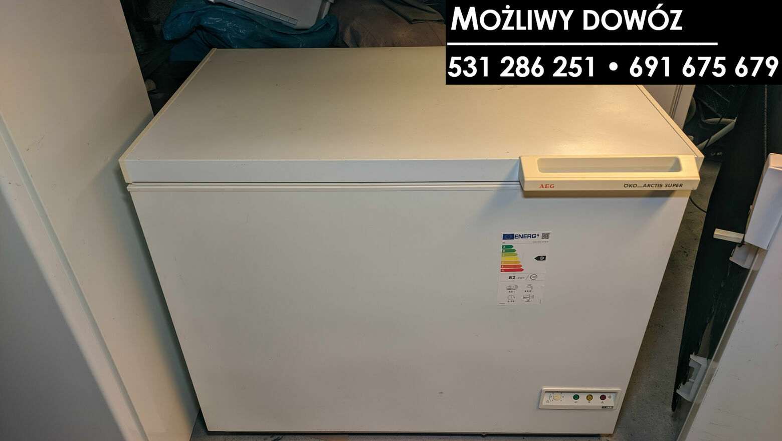 Zamrażarka skrzyniowa marki AEG o pojemności 195 litrów.